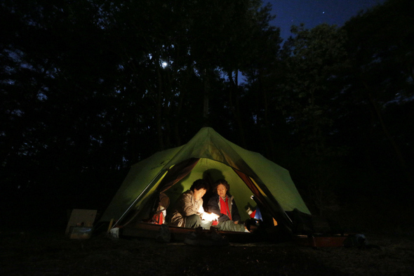 평밭마을 주민들이 5월21일 밤 경남 밀양시 청도면 요고리 132번 송전탑 공사장 들머리에서 보초를 서고 있다.