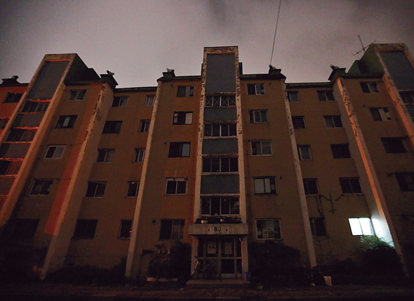 아파트 한 동에 마지막 남은 집이 스산한 어둠을 밝혀 사람이 살고 있음을 알리고 있다.