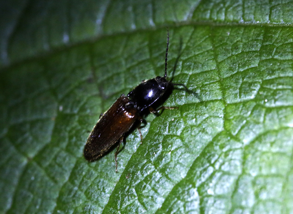 운문산반딧불이가 7월4일 밤 제주도 서귀포 한라산 중산간 법정사 숲 속 나뭇잎 위에서 형광색 빛을 내며 돌고 있다.