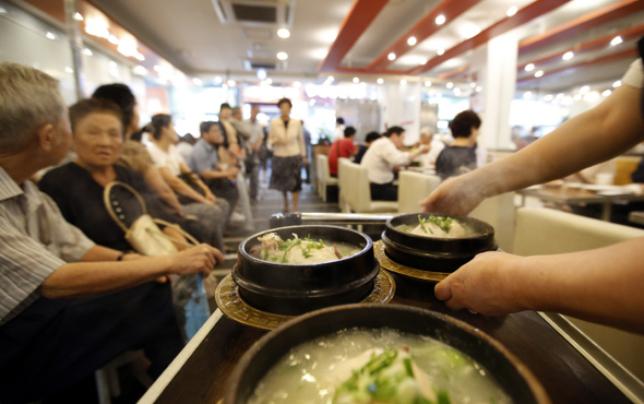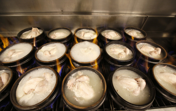 서울 명동의 닭요리 전문 음식점 ‘영양센터’ 주방에서 손님들에게 나갈 삼계탕을 끓이고 있다.