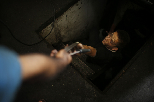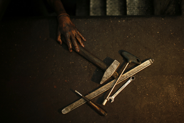 견습공 알리 알바트니지(18)가 연장을 넘겨받고 있다. 한 달 동안 열심히 일하면, 10만원 남짓을 집으로 가져갈 수 있다.