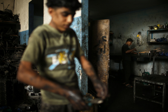 팔레스타인 가자지구 중심가 가자시티의 한 자동차 정비소에서 견습공으로 일하는 17살 무함마드 준데야의 손이 온통 기름때투성이다.