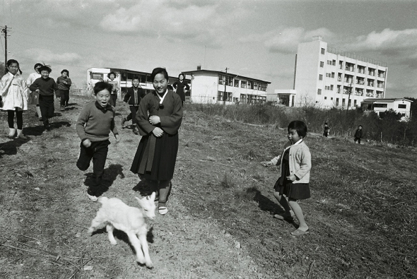 일본 미야기현 센다이의 한 조선학교에서 염소와 뛰어놀고 있는 학생들. (1973년 3월)