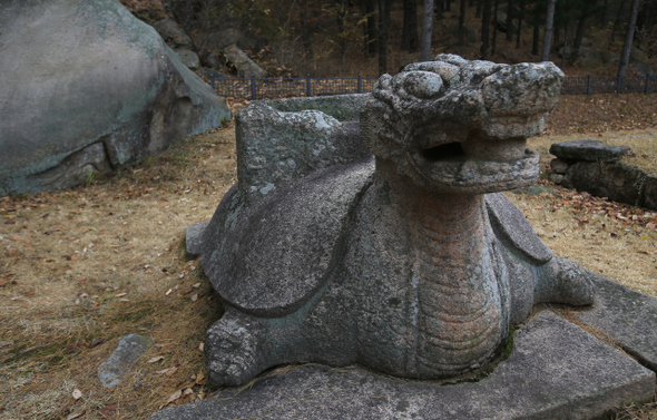 경남 합천 성주사 터에 남아 있는 귀부. 보물 제489호인 이 귀부는 동서로 한 쌍이 남아 있는데, 통일신라시대인 9세기 무렵의 작품으로 추정된다.