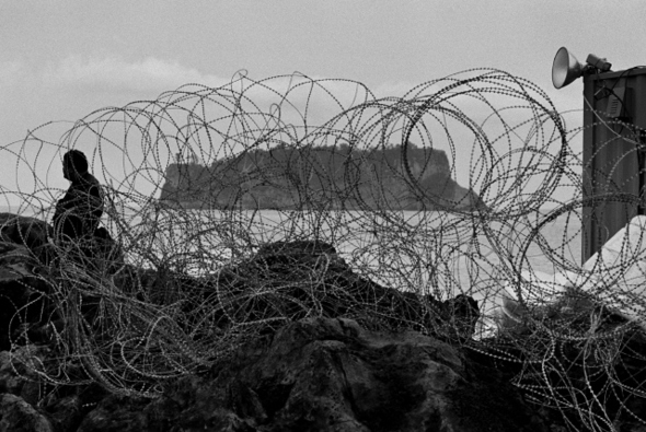 ⑧ 철조망으로 출입을 막은 해군기지 공사장 너머로 범섬이 보인다. 범섬은 고려 공민왕이 최영을 보내 ‘목호’(제주에서 말을 기르던 원나라 관리)와 그들을 도운 제주도민들을 토벌한 곳이다. 제주도민에게 육지의 왕조는 이국의 왕조와 다를 게 없었다.