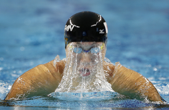 남자 평형 200m에서 동메달을 딴 일본의 고세키 야스히로가 역영하고 있다.