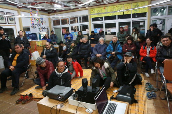 지난 1월18일 저녁 강정마을 주민 등 50여 명이 참가한 가운데 상영회가 열렸다.