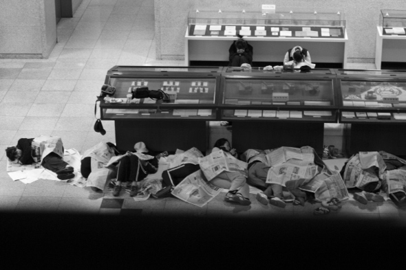 국회 헌정기념관 KTX 해고 승무원 80여 명이 서울 여의도 국회 헌정기념관에서 당시 한명숙 총리 내정자 면담을 요구하며 농성에 들어갔다. 추위에 떨며 밤새 농성한 승무원들은 이튿날 투입된 경찰에게 강제 연행됐다. 2006년 4월19일.