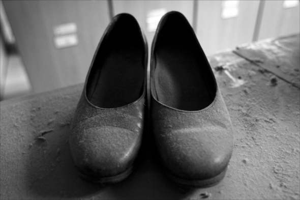 구두 한국철도공사(코레일)에서 농성 중인 KTX 해고 승무원들이 소지품을 찾기 위해 KTX 승무 본부 로커룸을 찾았다. 오랜 시간 주인을 찾지 못한 구두가 하얀 먼지로 뒤덮여 있다. 2006년 3월9일.