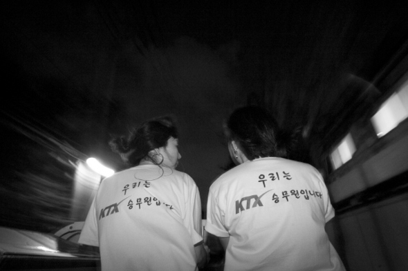 뒷모습 끝이 보이지 않는 터널 속 긴 어둠이지만, 그럼에도 불구하고 “우리는 KTX 승무원입니다”. 2008년 5월22일.