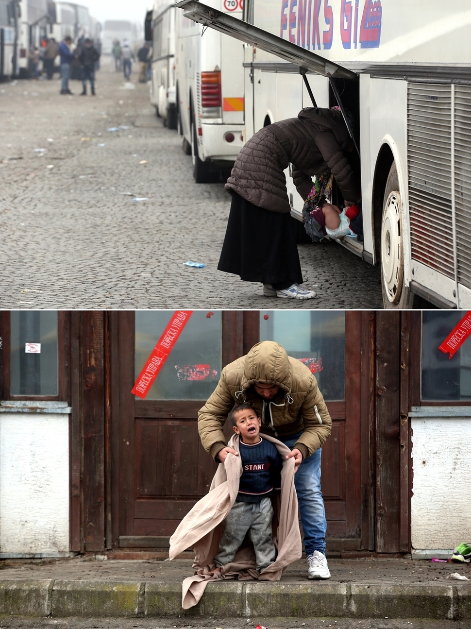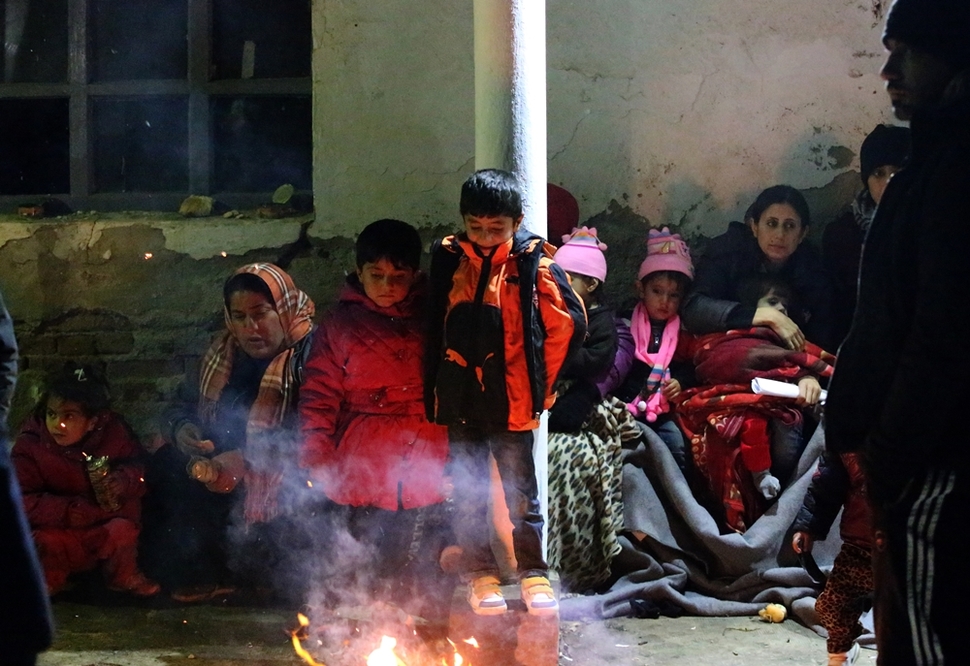 난민들이 추위를 피하기 위해 종이를 태우고 있다. 세르비아 남쪽 프레셰보.