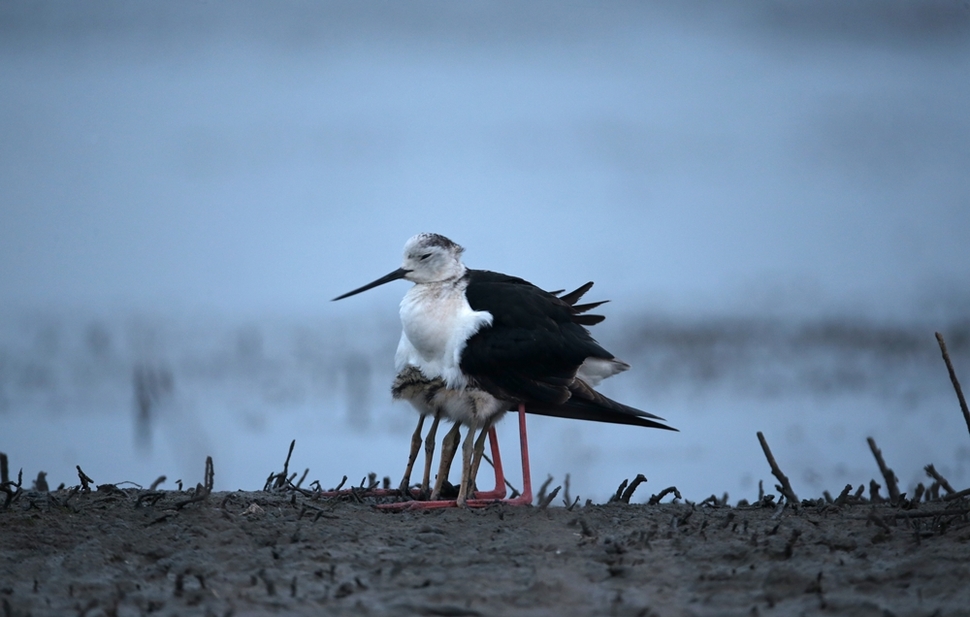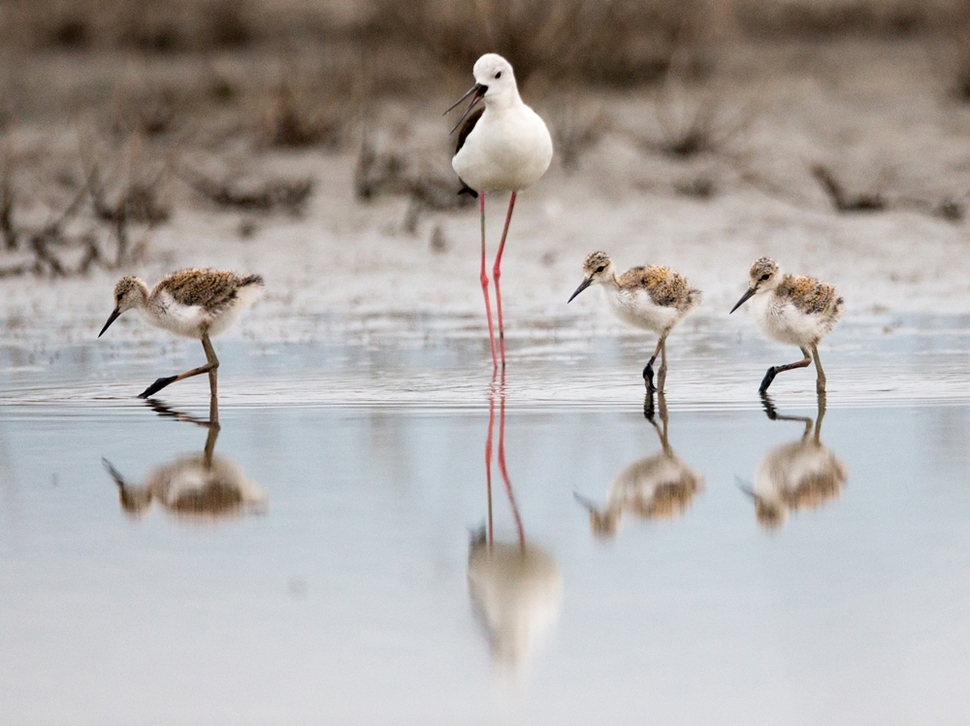 붉은발도요, 흰물떼새, 꼬마물떼새 같은 다양한 도요ㆍ물떼새 둥지도 장다리물떼새 둥지 10여 개와 함께 발견됐다. 50여 마리의 장다리물떼새 무리는 함께 알을 품고 새끼를 키우며 서식지를 지켰다. 새호리기와 황조롱이 같은 맹금류, 덩치 크고 사나운 갈매기나 까마귀가 다가올 때면 날카로운 경계음과 동시에 포란 중이던 어미까지 날아올라 침입자를 자신의 영역 밖으로 쫓아냈다. 길고 가는 다리를 가진 어미는 다리를 반으로 접어 무릎을 꿇고 새끼를 품었다. 날개 아래에서 어린 새는 체온을 유지하고 천적을 피했다.