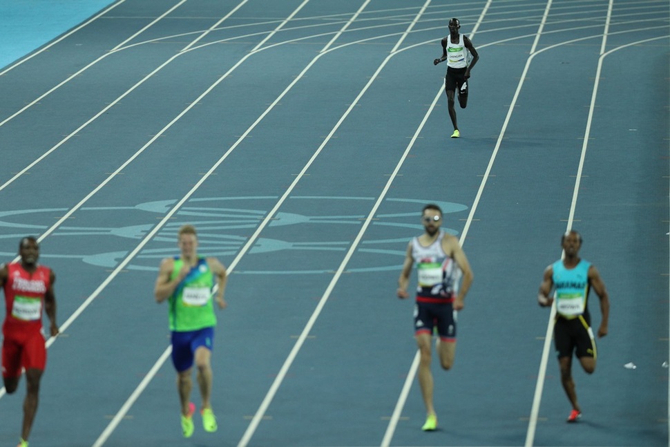 남수단 출신의 자메스 니앙 시엥지에크는 남자육상 400m 조별 예선에서 52초89를 기록하며 준결승전에는 나가지 못했다. 신화 연합뉴스