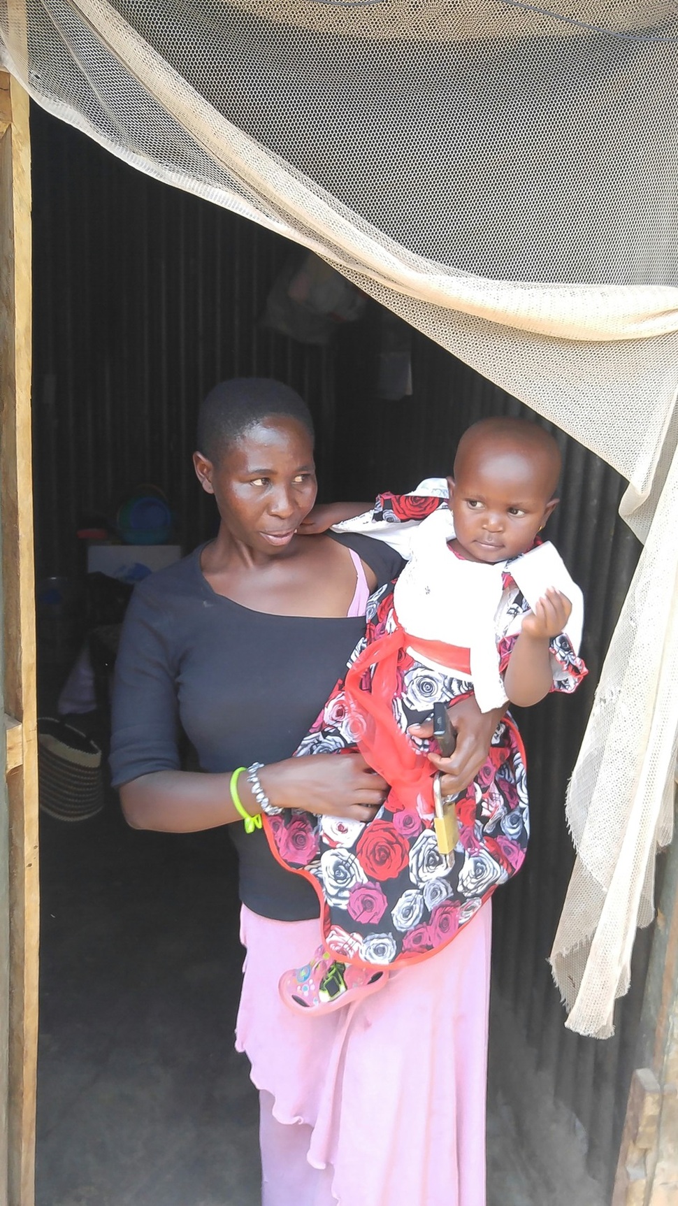 컴패션의 ‘태아·영아 생존 프로그램’에 따라 에이즈 치료 관리를 받고 있는 엄마와 두 살 된 딸. 임신 단계에서 조기검진으로 HIV 보균을 확인하고 항레트로바이러스제를 복용하고 감염을 더욱 최소화하기 위해 제왕절개수술을 진행해 모태 수직감염을 피한 덕분에, 아기는 정상적으로 태어나 건강하게 잘 자라고 있다. 엄마 역시 적절한 영양관리와 무료 치료약을 정기적으로 받으며 일상생활을 하고 있다.