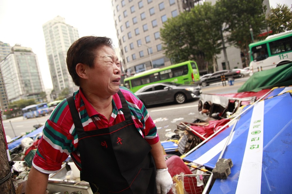동작구청의 노점상 단속에 오열하는 서재순(66)씨.