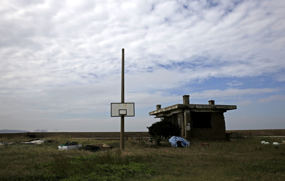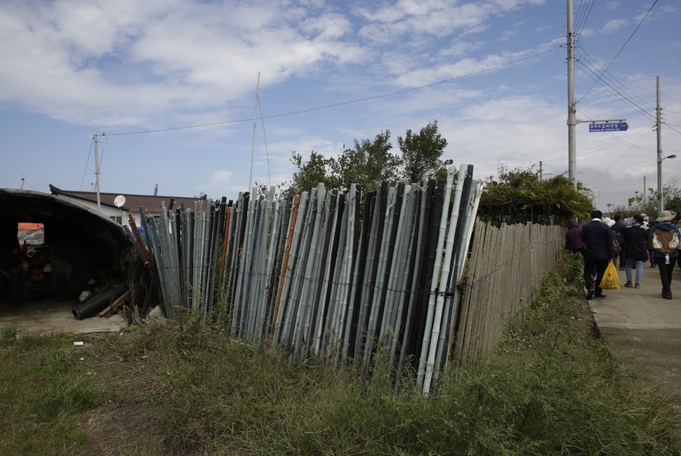 물자가 부족한 섬에서는 김 양식장에서 쓰던 장대도 모아 울타리 재료로 쓴다.