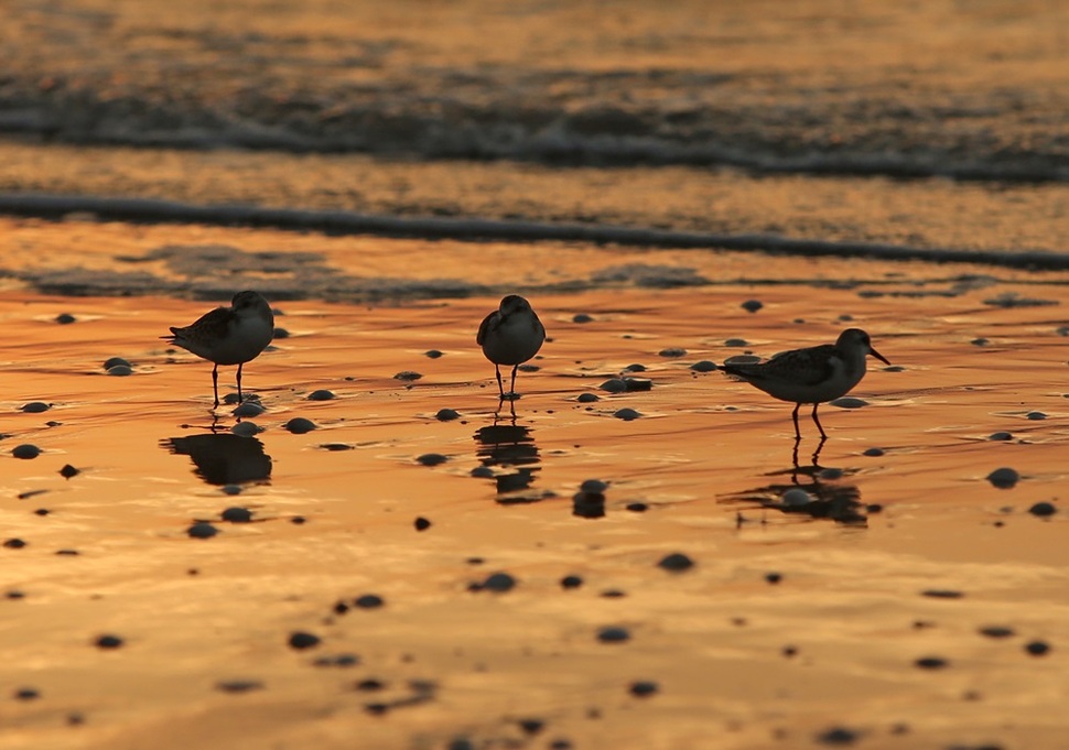 물막이 공사로 새만금 갯벌은 매립되고 파괴됐다. 바로 옆 유부도 갯벌이 생태 기점으로서 그 중요성이 더욱 커지고 있다. 월동지로 이동 중에 내려앉은 세가락도요가 썰물을 따라가며 먹이를 잡고 있다.