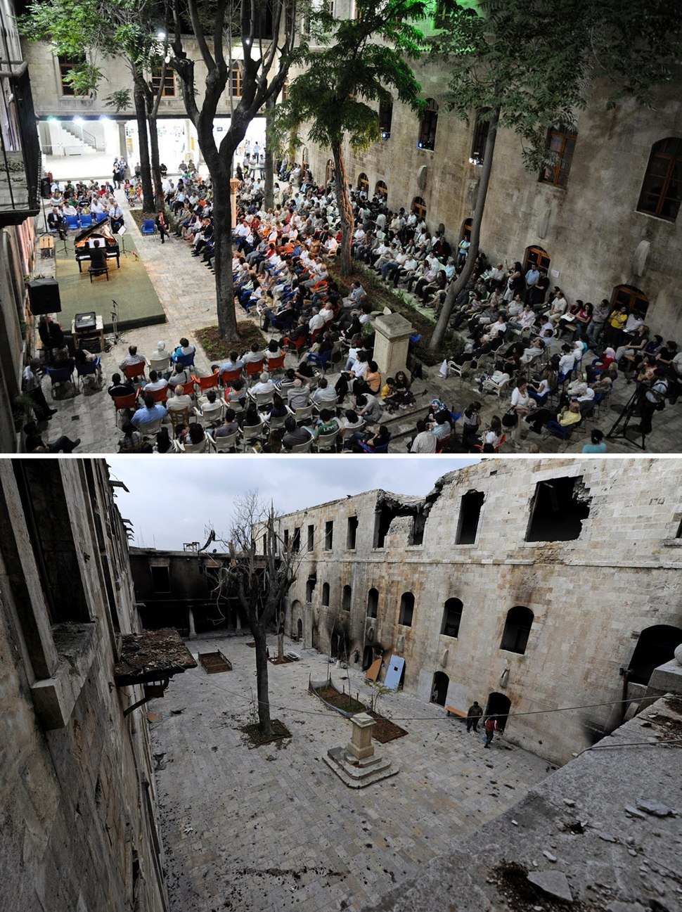 2009년 6월6일과 2016년 12월17일, 알레포의 옛 시가지에 있는 알셰바니 학교의 안뜰.