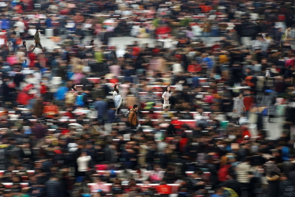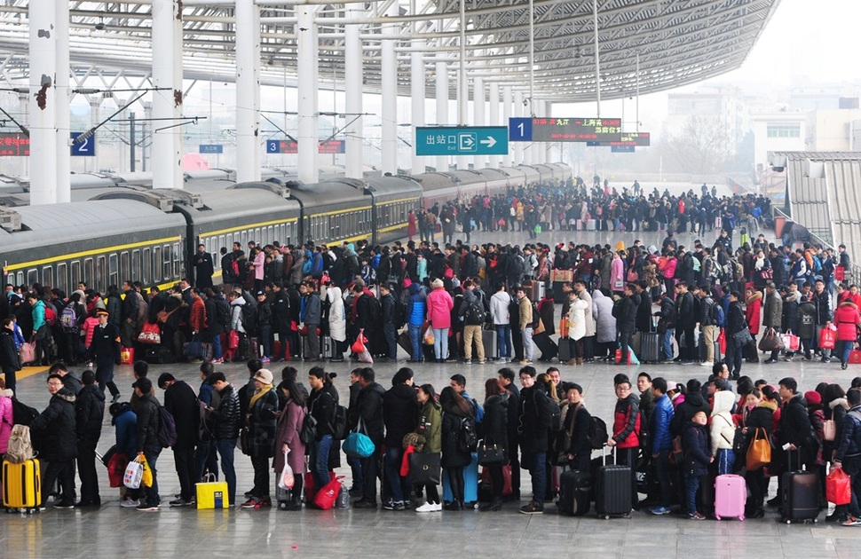 지난 1월25일 중국 상하이 기차역에서 탑승을 기다리는 승객들. 춘절 연휴에 베이징과 상하이의 귀성객은 수억 명이다.