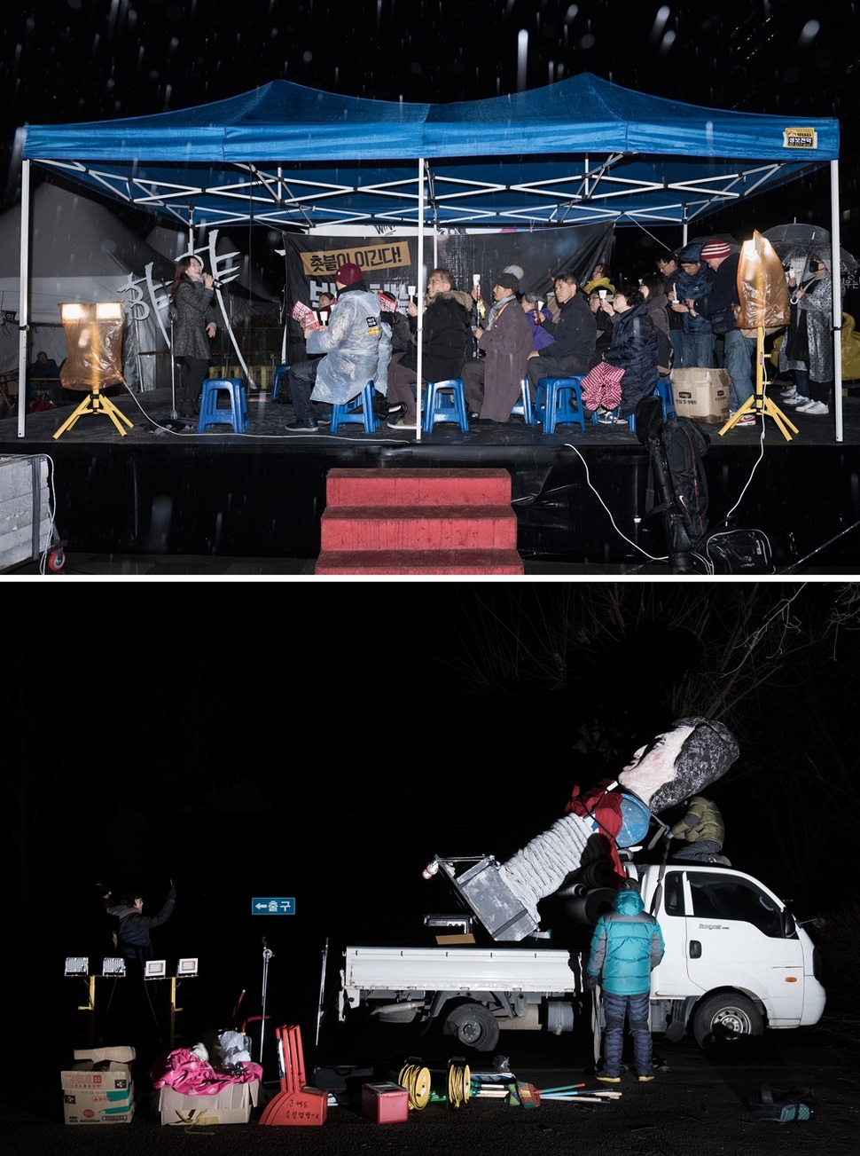 주말에 열리는 대규모 촛불집회는 눈이 오나 비가 오나 바람이 부나 날마다 열리는 ‘매일 촛불’의 징검다리를 건너서 온다.