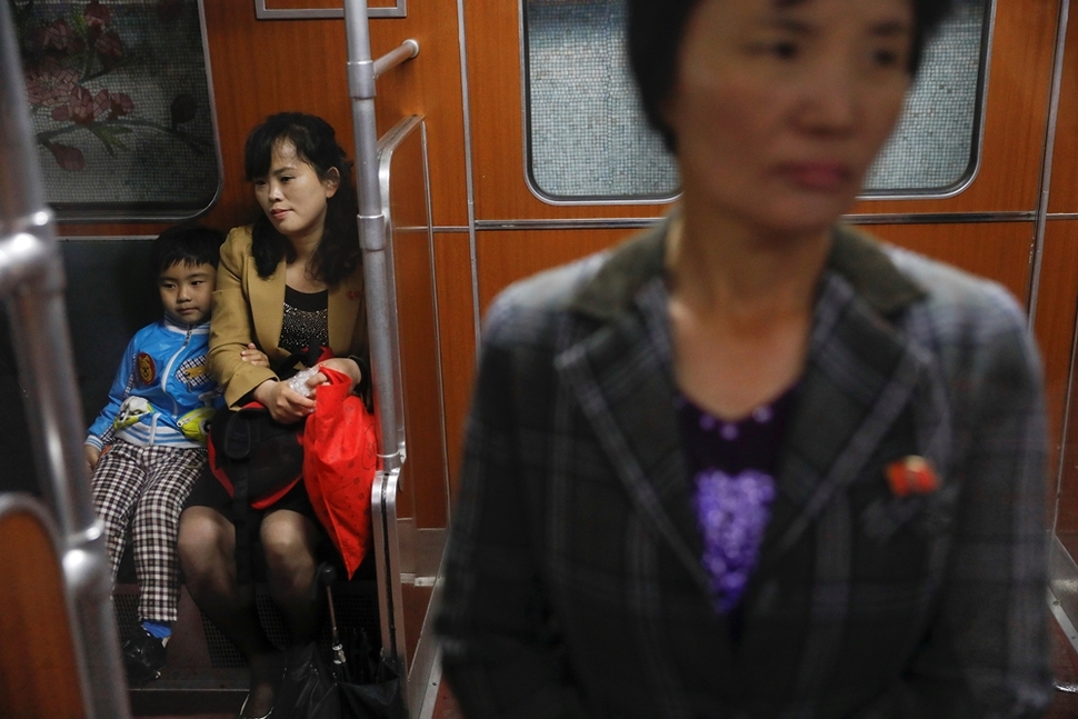 외신 기자들이 지하철역 구경에 나섰다가 마주친 북한 평양 주민의 모습.