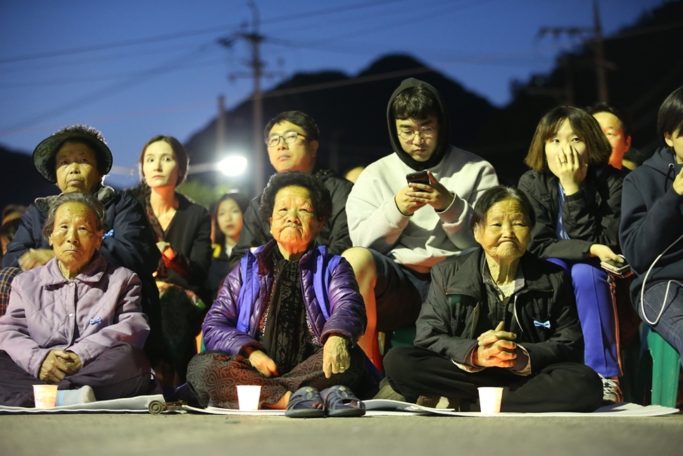 “평생 살아온 마을이 이 지경인데 내가 어떻게 안 나올 수 있겠나. 어느 누가 나라가 잘못되기를 바라겠나. 나라가 우리를 버린 거야.” 장 할머니는 다음날에도 이른 아침부터 이어진 고된 밭농사 일을 마친 뒤 늦은 저녁 촛불집회장을 찾았다. 집회를 마친 할머니는 보행 보조기를 밀며 무거운 발걸음으로 집에 돌아왔다.
