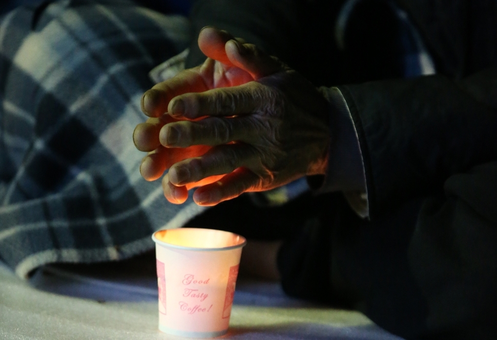 5월3일 저녁 촛불집회에서 추위에 언 손을 녹이려는 듯 손을 모아 촛불 위에 올려놓았다.