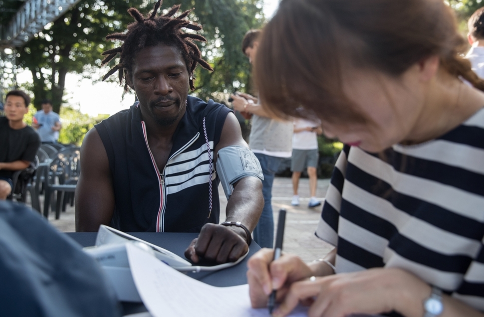 그는 지난해 9월 카메룬에서 질병으로 사망한 자신의 딸을 생각하며 이날 대전료 절반을 희귀난치성 질환을 앓는 어린이에게 전달했다. 대전료라 해봐야 60만원에 불과하다.