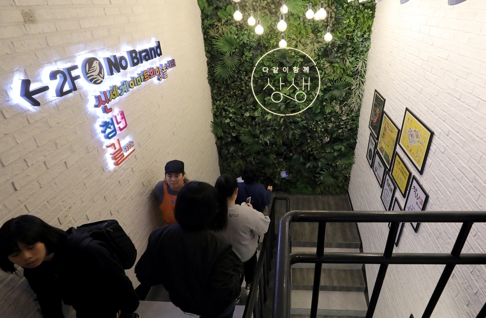 시는 이 돈으로 24년간 버려졌던 전통시장 내 2층의 빈 가게를 정비해 ‘청년길’과 ‘노브랜드 청년 상생스토어’를 만들어 11월2일 문을 열었다. 이곳에 입주한 21개의 점포는 기존 사업자를 배제하고 의지와 열정이 있는 상인들 가운데 뽑았다. 기존 시장에 부족한 아이템 위주로 골라 커피전문점, 도자기 공방, 꽃집, 네일아트 등 업종도 다양하다. 상생 효과를 극대화하기 위해 청년길을 거쳐야만 ‘노브랜드 상생스토어’로 들어갈 수 있도록 설계했다.