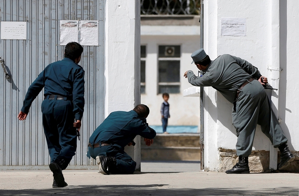 8월25일 아프가니스탄 수도 카불의 시아파 이슬람 사원에서 이슬람 극단주의 세력인 이슬람국가(IS)의 소행으로 추정되는 자살폭탄 테러가 일어나 30여 명이 죽거나 다쳤다. 아프간 경찰이 공격 대상이 된 이슬람 사원을 배회하던 4살 소년 알리 아흐마드에게 어서 이쪽으로 피하라고 다급히 손짓하고 있다. 로이터