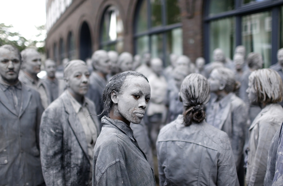 독일 함부르크에서 열린 주요 20개국(G20) 정상회의를 이틀 앞둔 7월5일, 좀비 모습을 한 시민들이 ‘1천 개의 모습’이라 하는 행사에 참가했다. 온몸을 잿빛 진흙으로 칠한 이들은 좀비처럼 비틀거리는 걸음으로 도시를 배회하다 옷을 벗고 인간의 모습을 되찾는다. 이 행사를 기획한 이들은 약육강식의 세계에서 잊었던 ‘인간의 연대’라는 가치를 되살리기 위해 이번 행사를 기획했다. 로이터