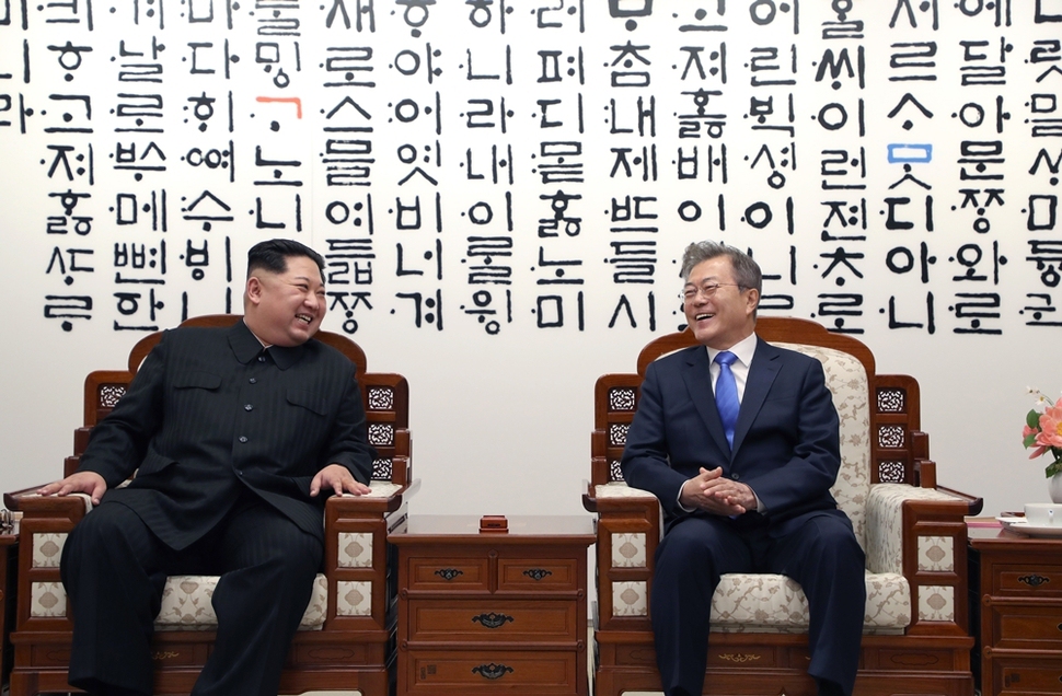 문재인 대통령과 김정은 국무위원장이 정상회담에 앞서 환담하고 있다.