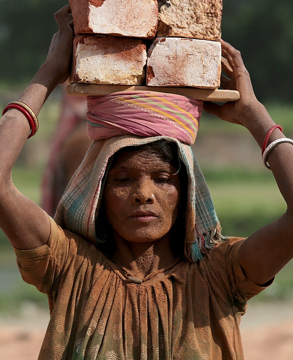 인도 동부 콜카타(옛 명칭은 캘커타)에서 북쪽으로 55km 떨어진 나그다 마을에서 5월29일 한 여성이 벽돌을 머리에 인 채 나르고 있다. 몬순이 오기 전 이 지역 날씨는 한낮 최고기온이 섭씨 38℃에서 45℃를 오르내린다. 벽돌에서 흘러내린 흙이 땀과 뒤섞여, 얼굴과 옷을 벽돌색으로 물들였다. 절대빈곤층과 방글라데시에서 들어온 난민이 많은 이 지역에선 중노동을 하는 여성을 흔히 볼 수 있다. 폭염과 빈곤, 이중고에 맞서는 사람들. 지구촌 여러 공동체가 이념이나 종교 갈등에 앞서 극복해야 할 과제다.