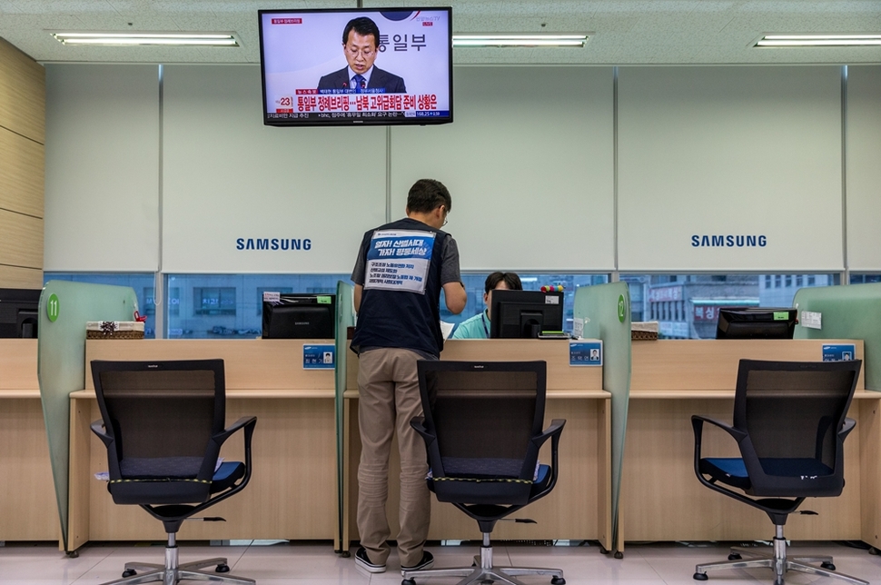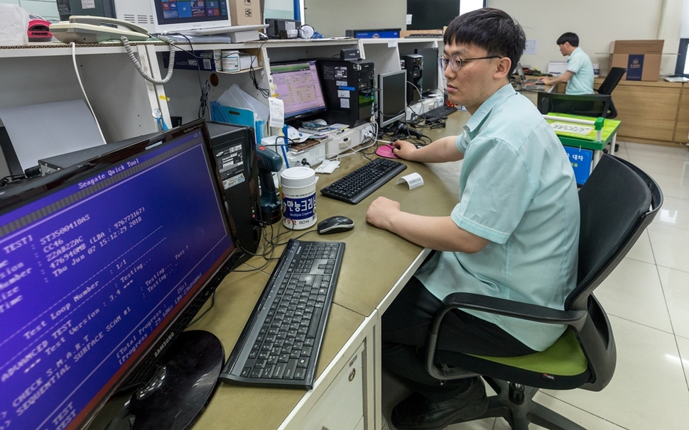 6월7일 삼성전자서비스 서울 양천센터에서 컴퓨터를 점검하는 수리기사들. 이곳 기사들은 모두 노동조합에 가입했다.