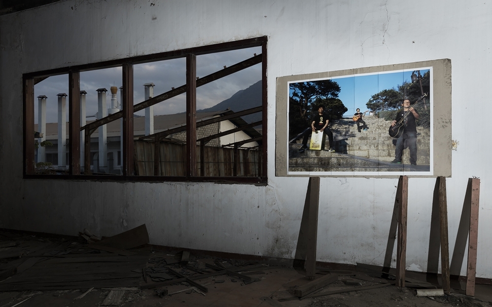 인도네시아 콜트 공장 옆 빈 공장에서 첫 무대에 섰던 콜트·콜텍 기타 노동자 밴드의 사진을 전시했다.