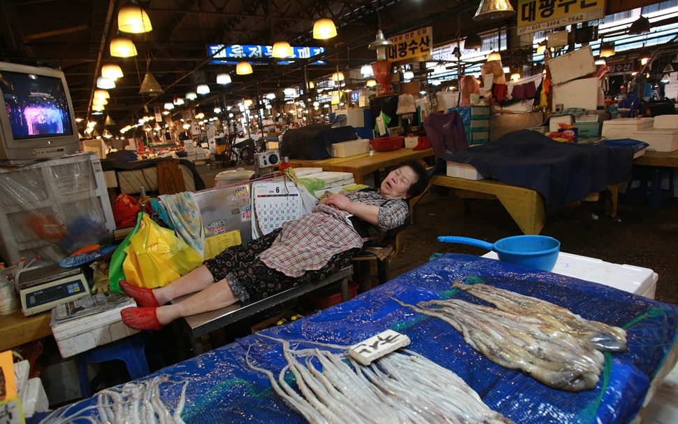노량진수산시장이 문을 연 지 48년 만인 지난 11월7일, 수협의 단전으로 불이 꺼졌다. 새 시장으로 이전하기를 거부하는 상인들을 내몰기 위한 정전·단수 조처다.