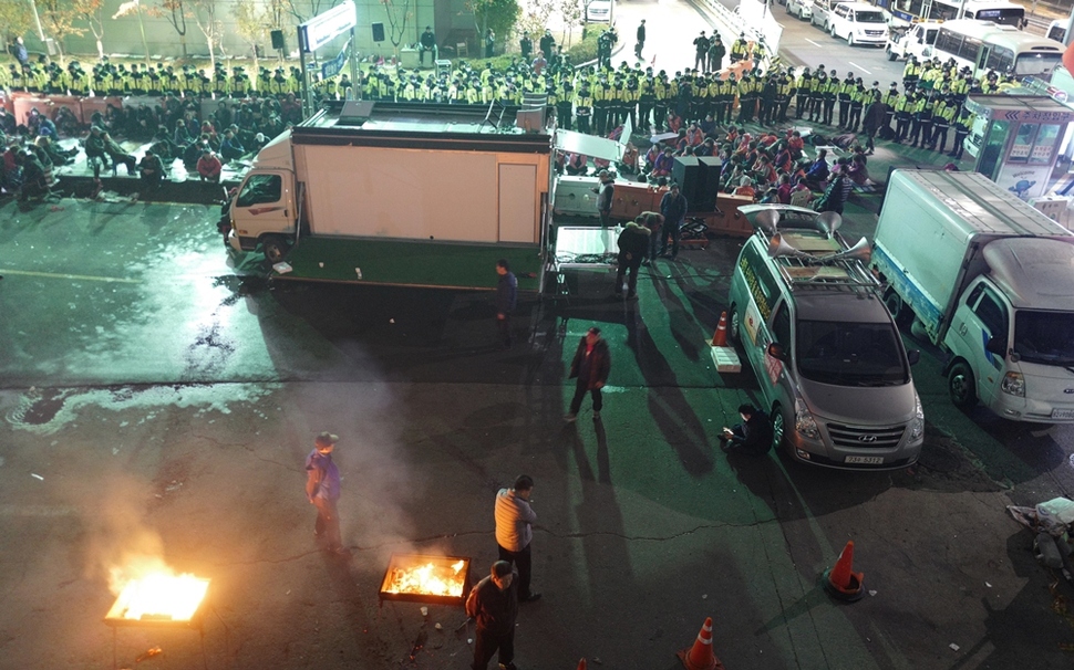 최근 수산업협동조합중앙회는 모두 네 차례 명의양도 집행과 단전·단수, 그리고 고소·고발로 상인들을 내쫓으려 했다. 48년 만에 노량진수산시장의 불이 꺼진 지난 11월6일, 어두침침한 시장 한쪽에서 직원들과 상인들이 충돌해 부상자가 나와 병원에 실려갔다. 현장에 출동한 경찰이 수협 직원과 용역의 폭력을 막아내기엔 역부족이었다.