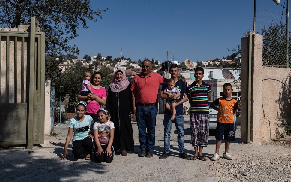 한자리에 모인 하캄씨(가운데) 가족. 하캄씨는 부모님을 비롯해 가족 22명과 살고 있다. 8살 된 막내딸 마리엠은 “가장 무서웠을 때는 이스라엘 군인들이 집 앞에 왔을 때와 학교에 최루탄을 쐈을 때”라고 말했다.