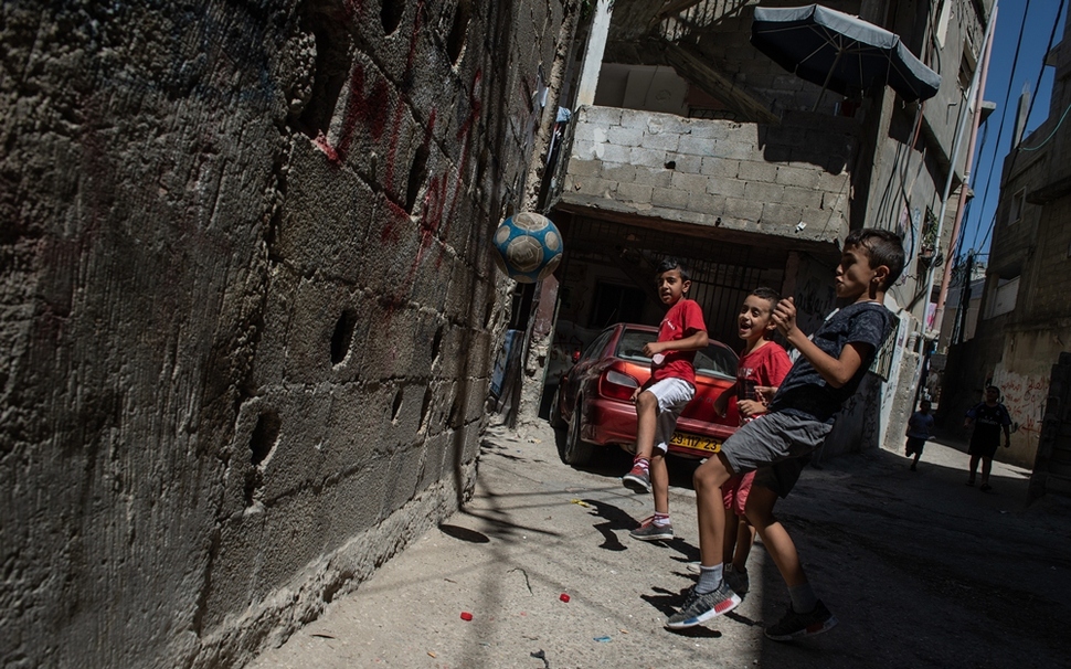 1949년 만들어진 베들레헴 다이셰 난민캠프는 1㎢ 넓이에 난민 1만6천여 명이 산다. 난민캠프에서 어린이들이 공놀이를 하고 있다.