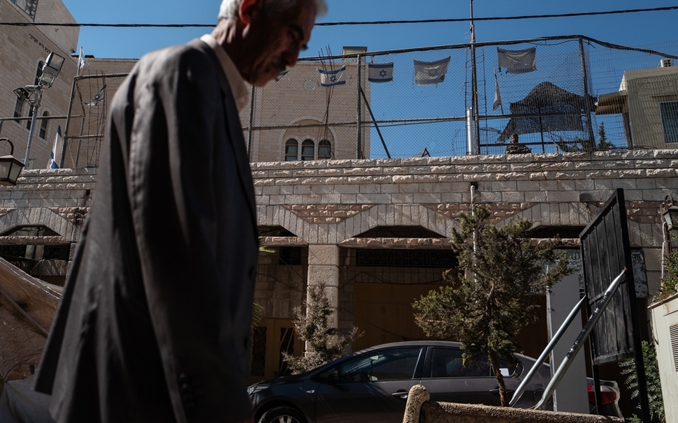 요르단강 서안지구 남부 헤브론에서 팔레스타인 주민이 걸어가고 있다. 이곳에 팔레스타인 주민 약 16만5천 명과 유대인 약 800명이 거주하는데, 유대인은 불법 정착촌에 산다. 그리고 자국민 보호를 이유로 이스라엘 군대가 주둔한다.