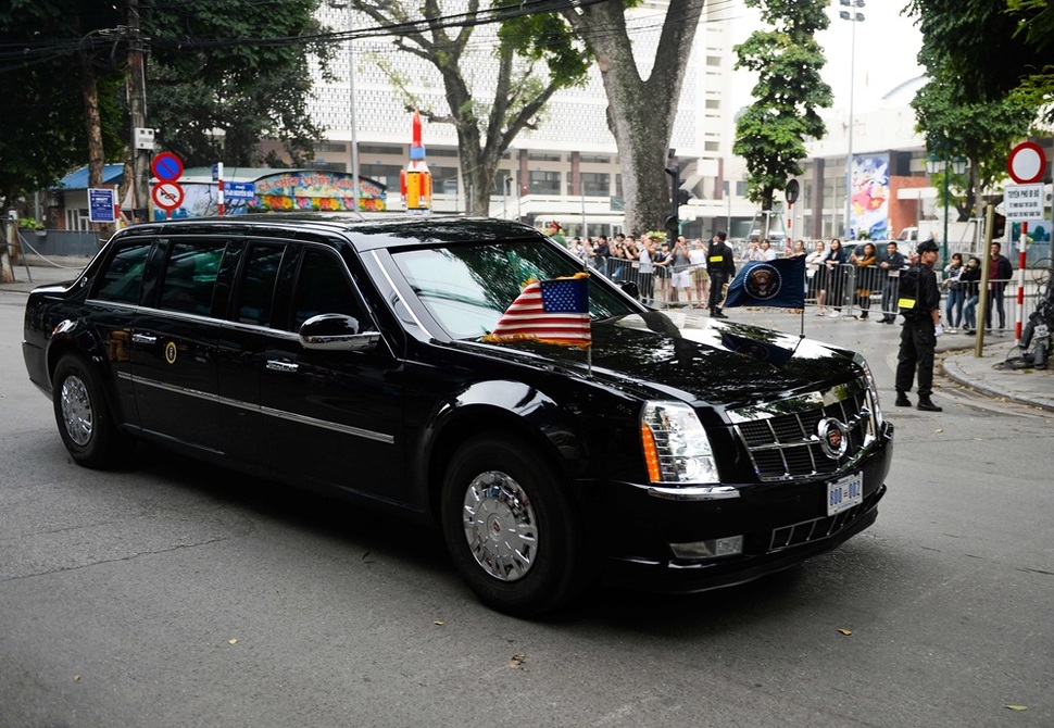 도널드 트럼프 미국 대통령이 탄 전용차량 ‘비스트’가 2월28일 회담장을 떠나고 있다.