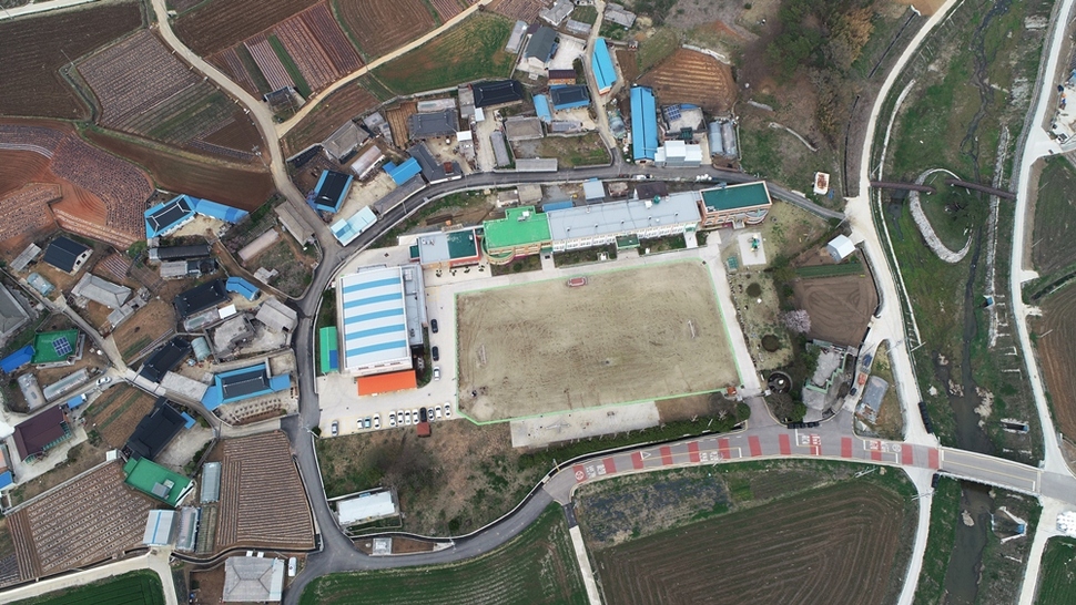 교육청에서 지원하는 스쿨버스로 아이들이 하교하고 있다.