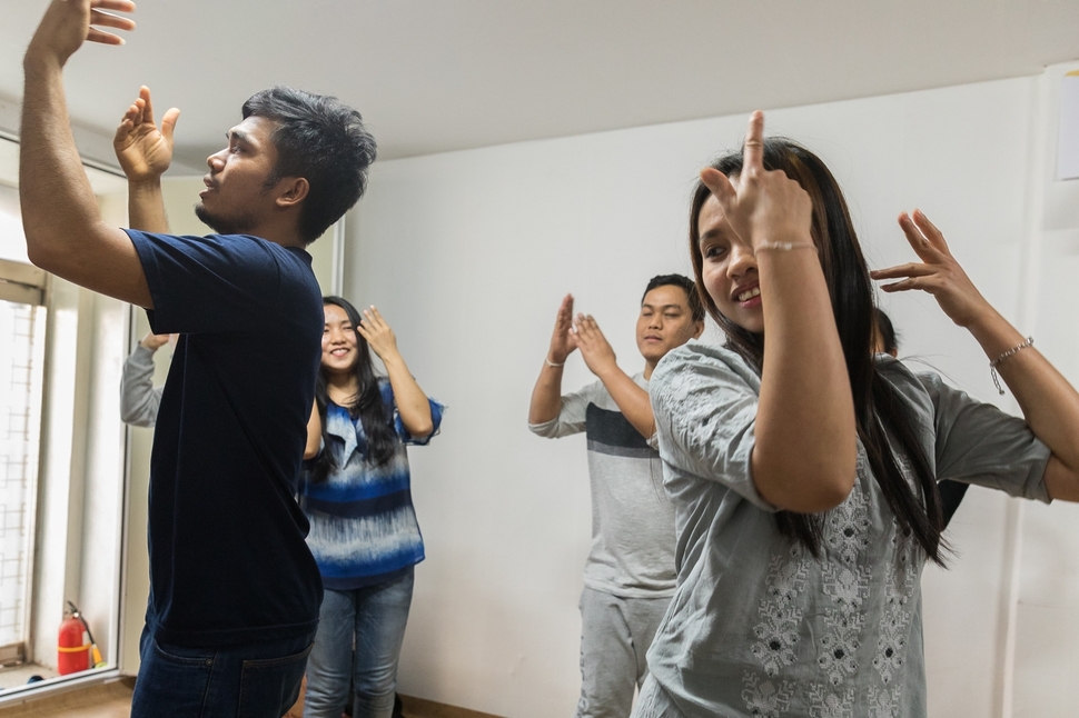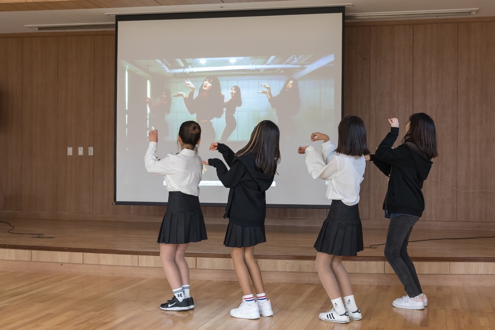 보이사비 축제 무대에 오르는 중학생들이 케이팝 춤을 연습하고 있다. 줌머인 학생과 한국 친구들이다.