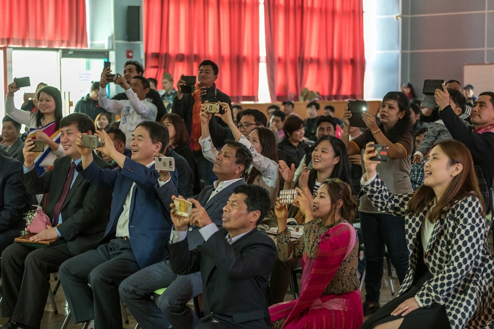 김포독립운동기념관에서 열린 축하 공연 모습을 줌머인과 김포 주민들이 스마트폰에 담고 있다.