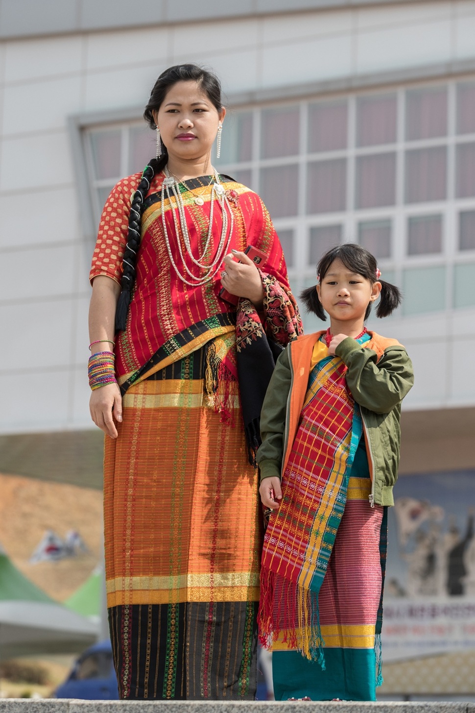 줌머 전통의상을 입고 보이사비 축제에 참가한 어머니와 딸.