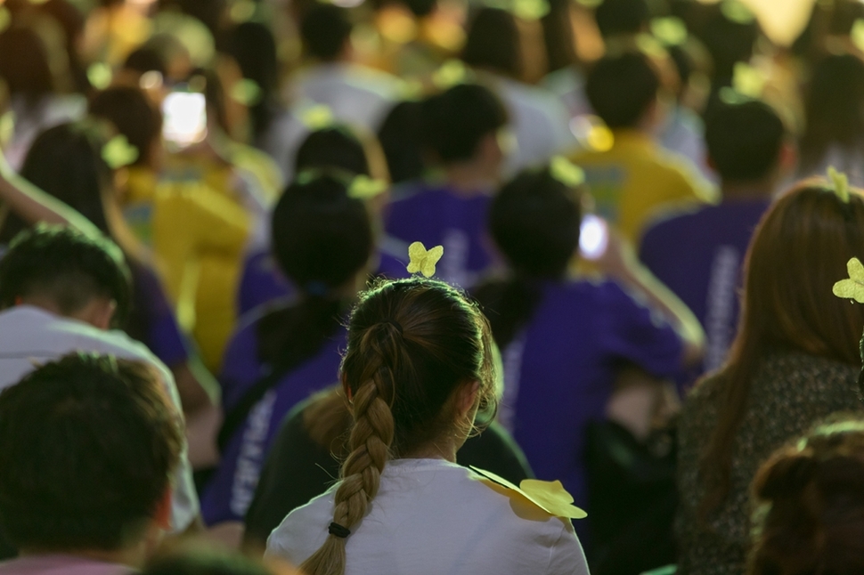 대학생 동아리 ‘평화나비 네트워크’ 회원들이 8월14일 주한 일본대사관 앞에서 일본군 위안부 기림의 날을 기념하는 ‘평화나비 페스타’를 열었다.