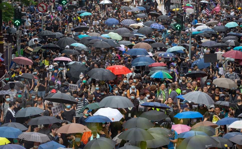 ‘우산혁명’ 5주년을 기념해 8월31일 거리로 나온 시민들이 우산을 든 채 홍콩의 중심가를 가득 메우고 있다.
