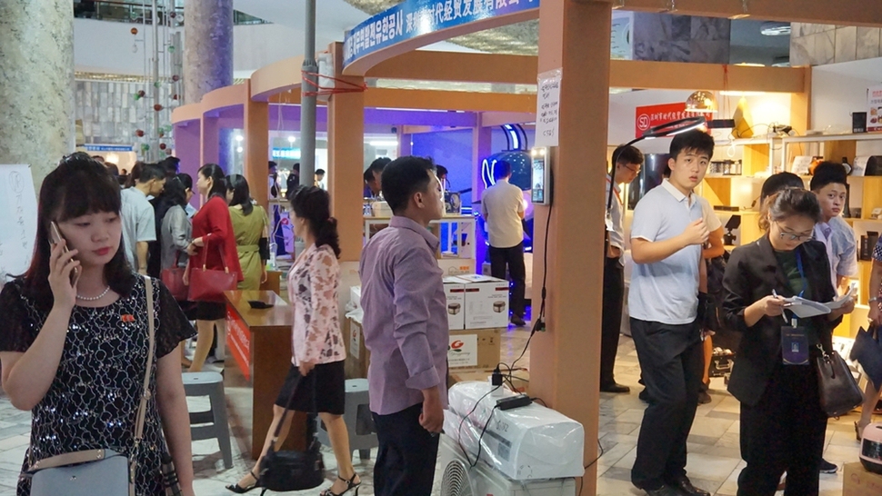 중국 랴오닝성 선양에 있는 ‘심전시사군태극기업연합회’가 주도해 50여 개 중국 기업이 참여했다. 전람회에는 최신 과학기술을 도입해 생산한 드론(무인항공기) 등 인공지능 제품을 비롯해 전자제품, 건축자재, 경공업제품, 가정용품은 물론 의류·신발·가방 등 다양한 생활용품도 많이 눈에 띄었다.