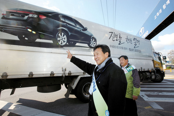 손 전 대표는 이날 아침 7시부터 홍 후보의 손을 잡고 부평농협과 GM대우 주변을 부지런히 누볐다. 손 전 대표와 마주친 강창규 한나라당 시의원(부평 제3선거구)은 “(지원 유세를) 너무 열정적으로 해주시는 것 아니냐”며 푸념했다. 민주당 당직자는 “주요 인사가 지원 유세를 나오면 대개 유세장에서 마이크 한 번 잡고 돌아가기 쉬운데, 손 전 대표는 자기 선거처럼 열심히 바닥을 누빈다”고 말했다.