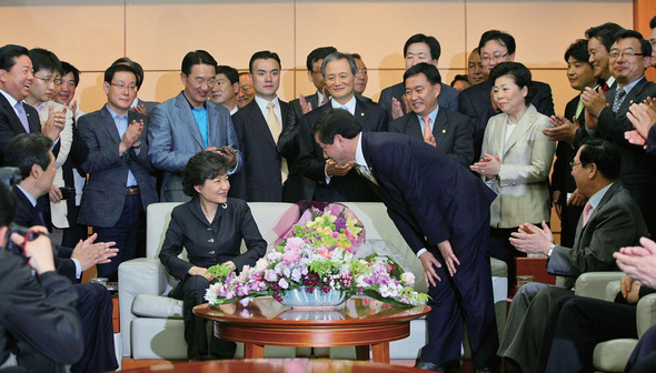 “박근혜 전 대표는 한나라당이 부도나면 싼값에 인수하겠다고 생각하는 것 같다. 당보다 자신의 정치적 이해관계를 먼저 따지는 듯한 모습을 벗어나지 않으면 유력한 차기 대선 후보로서의 위상도 흔들릴 수밖에 없다.”(한나라당 중진 의원)